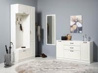 Шкаф комбинированный Кармен-1 Дуб золотой / Белый - функциональный предмет мебели для прихожей комнаты. Имеются несколько секций: шкаф для одежды, вешалка с крючками, тумба для обуви.