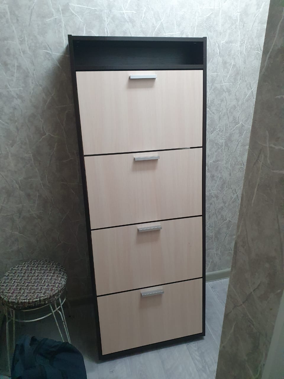 Конструкция с 4я откидными секциями для хранения обуви и открытой полочкой для ключей.
