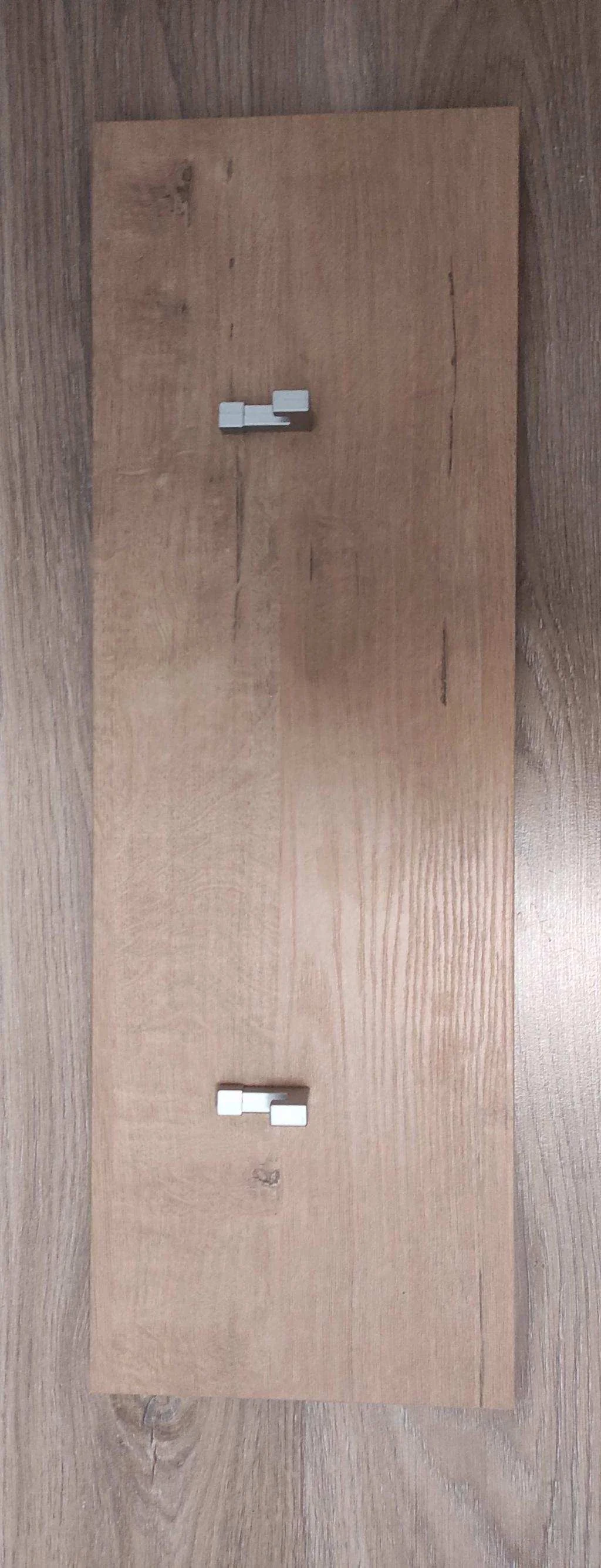 Панель из ламинированной ДСП с вмонтированными в нее двумя крючками для одежды.