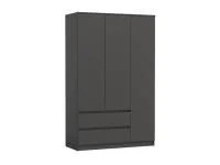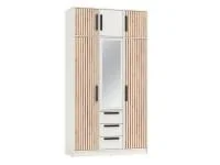 Внутри секция с полками и секция с горизонтальной штангой для плечиков..