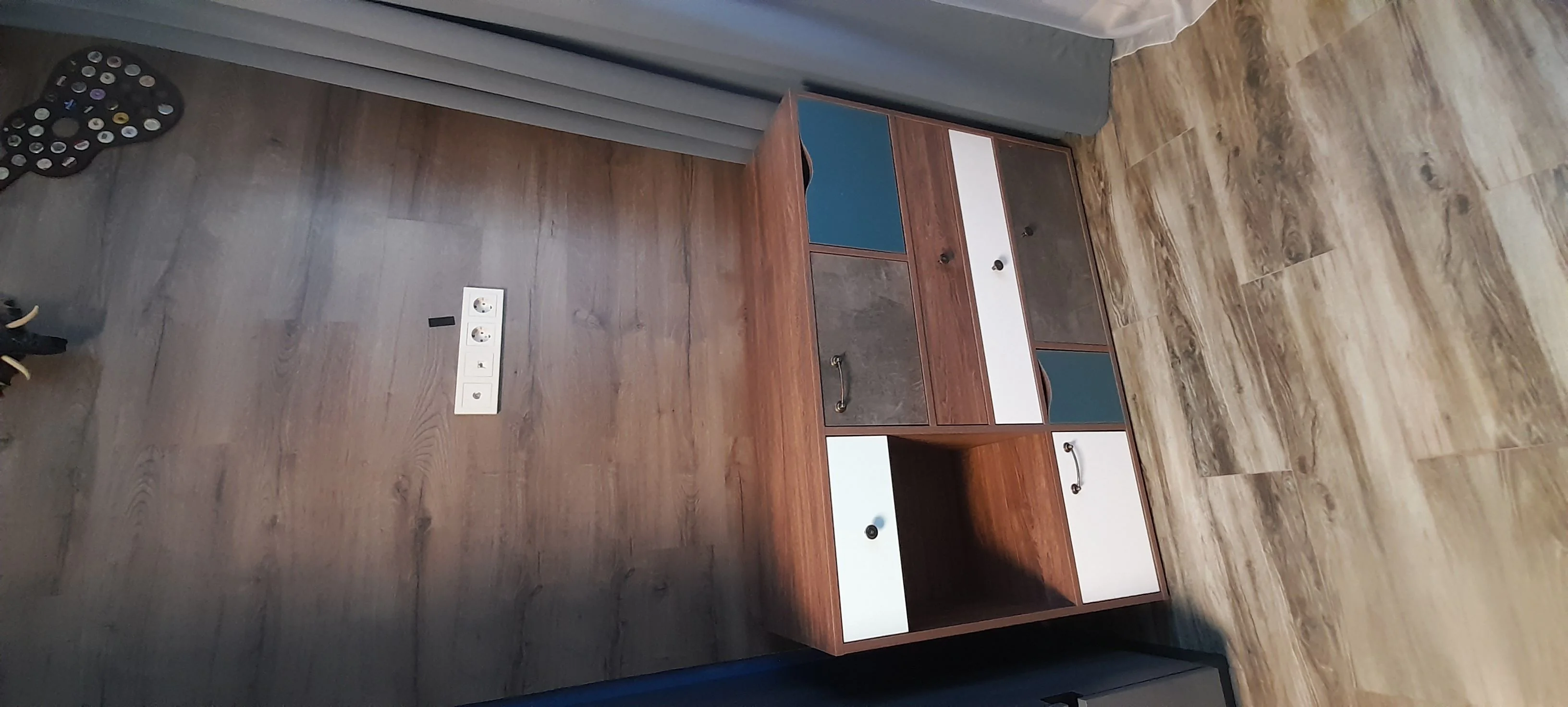 Оригинальное исполнение. Удобные ящики, разных размеров. Интересно подобраны цвета. Смотрится великолепно. Качество супер. Покупкой довольна!!!