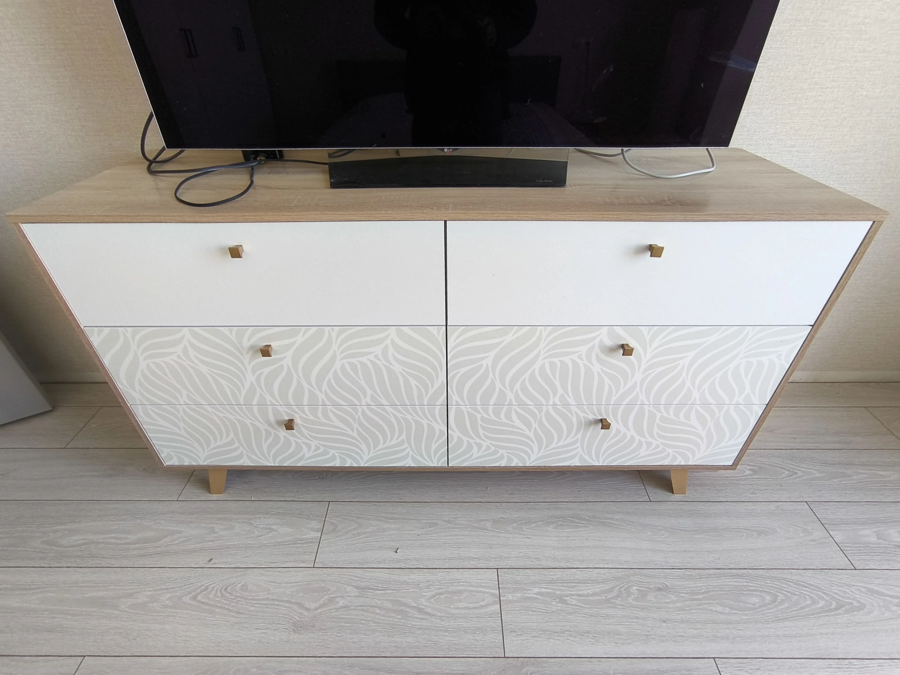 Комод устанавливается на высокие опоры, что позволит сохранять порядок в доме и обеспечат легкий доступ под него.