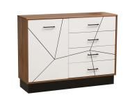 Комод Лофт 59.02 черный/дуб золотой прекрасно дополнит интерьер спальни или гостиной.Конструкция с тремя выдвижными ящиками и нишей для хранения за распашной дверцей.