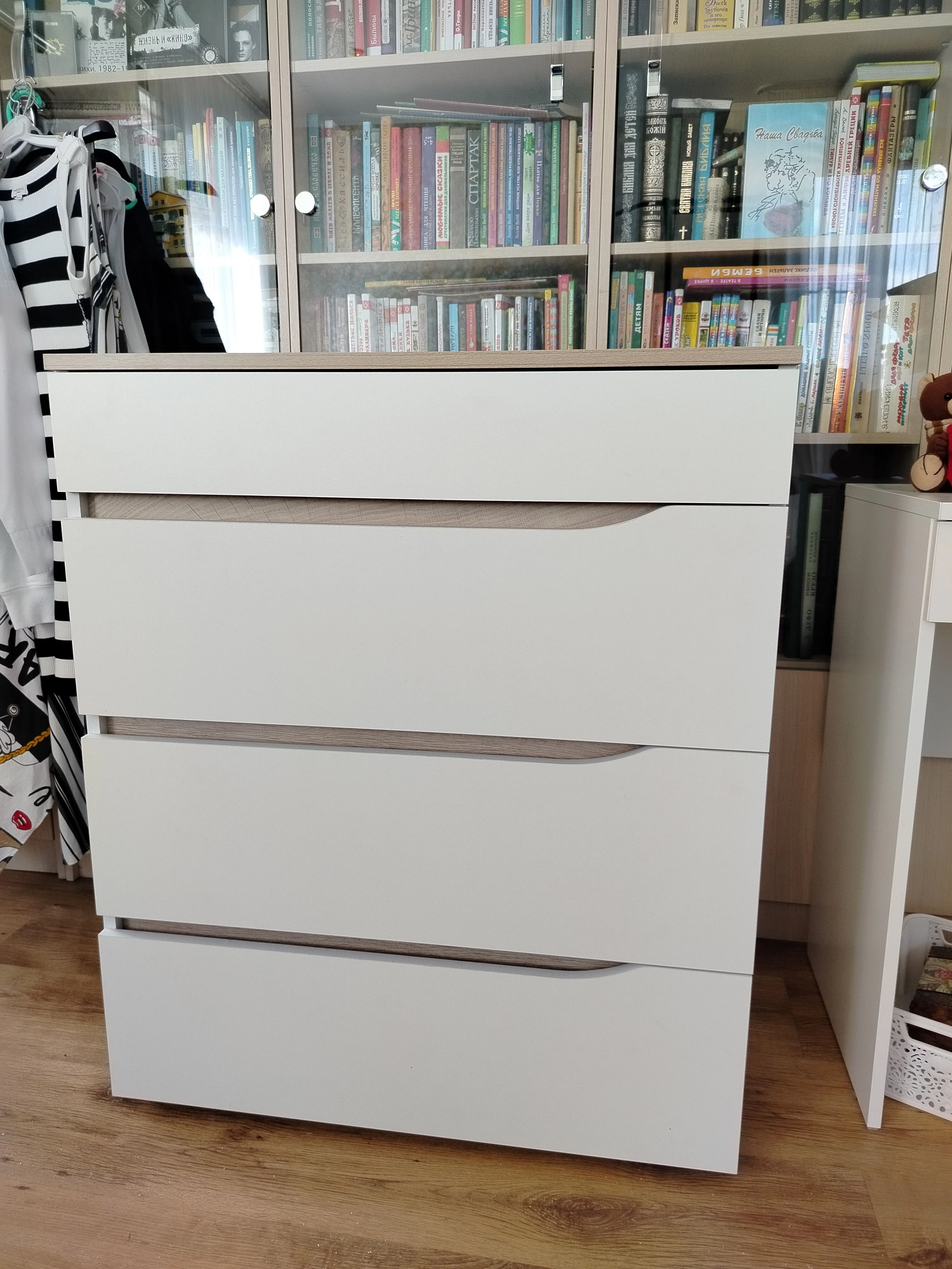 Заказала дополнение к 2м шкафам из этой же серии. Смотрится потрясающе. Воздушный белый цвет, всегда смотрится выигрышно. Качеством мебели довольна. Спасибо за быструю доставку и сборку.