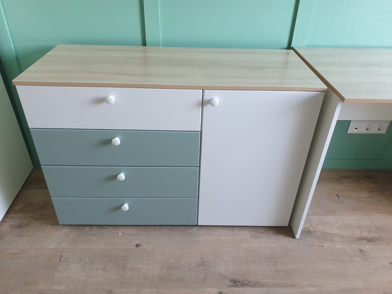НМ 041.39 комод Банни белый/дуб сонома/макарун