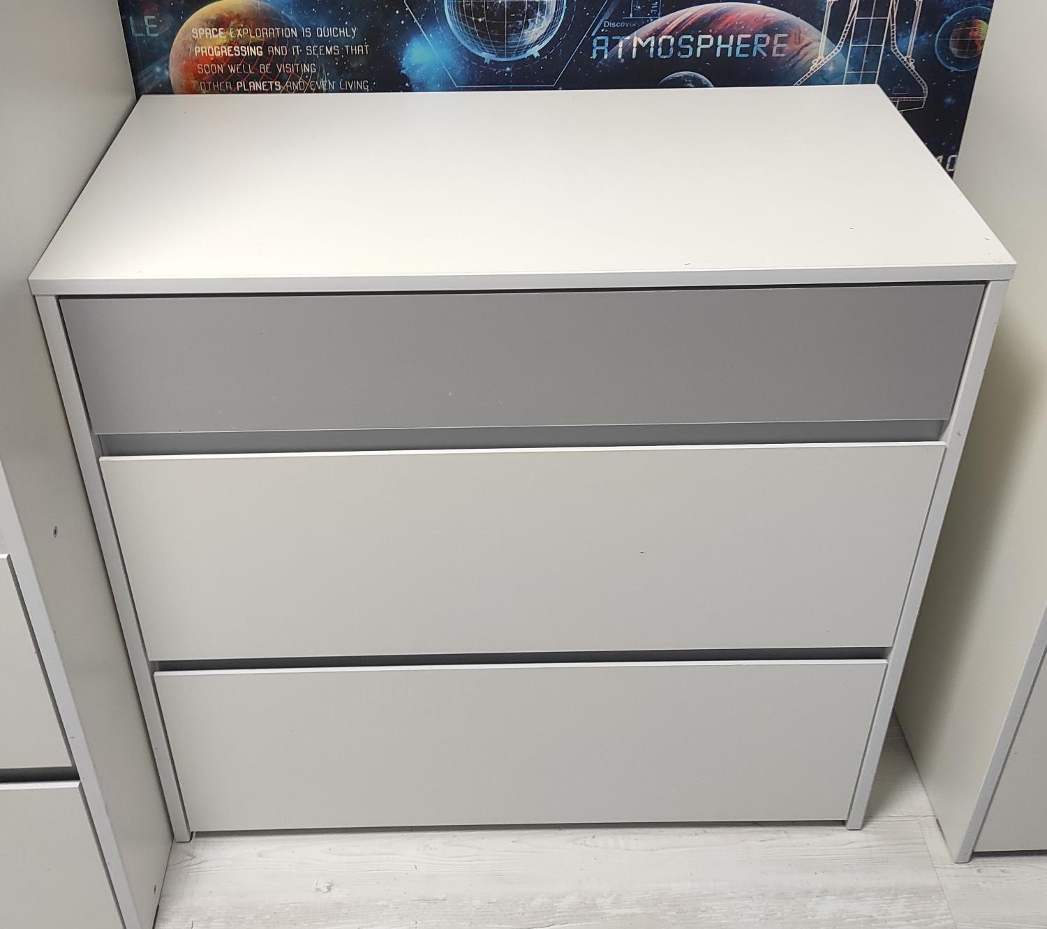 Торонто комод 13.321 Белый/Серый - практичное и модное изделие для хранения в детской или молодежной комнате.Конструкция с 3-я выдвижными ящиками разной глубины для удобства использования.