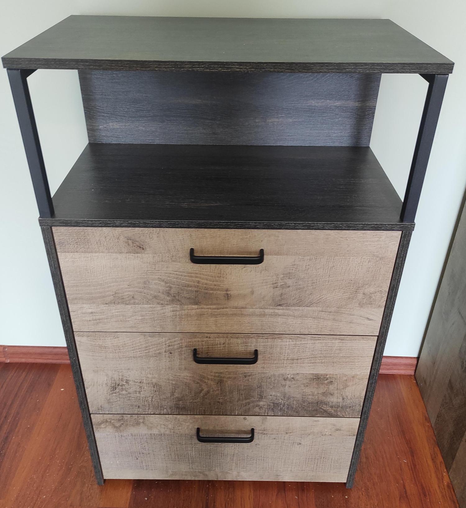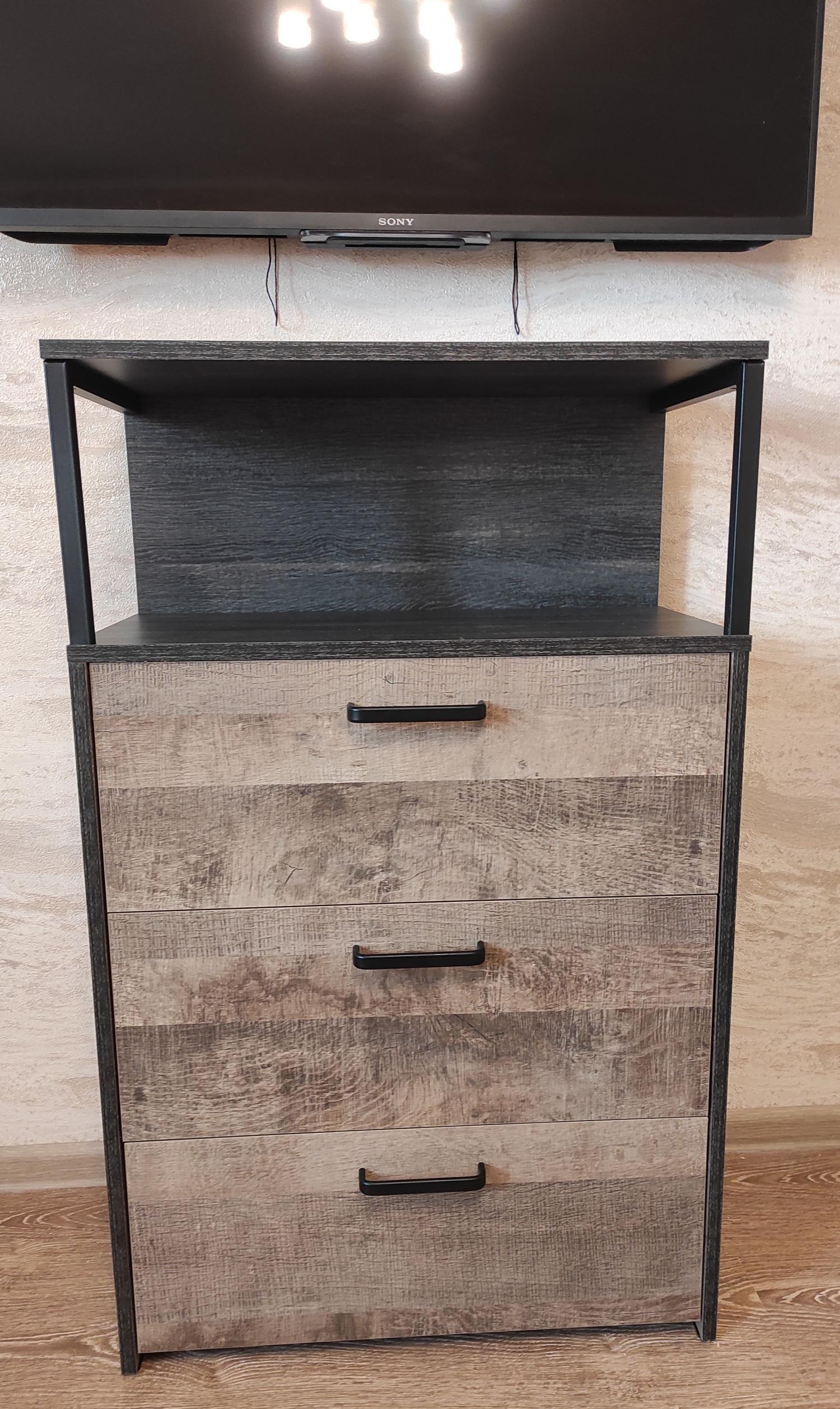 Трувор комод с ящиками 13.307.02 Дуб Гранж Песочный/Интра - яркая универсальная система хранения одежды или других предметов.Конструкция с 3-я выдвижными ящиками для хранения и открытой полкой.
