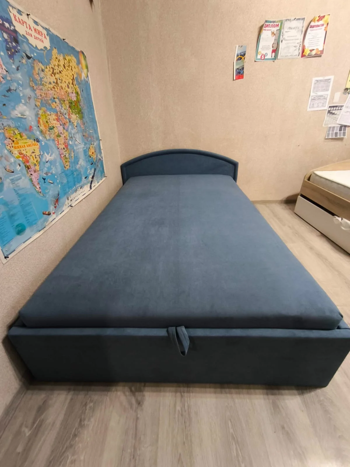 Тахта Берта 1400 модель 062 Галакси лайт 22 - стильная кровать с подъемным механизмом и ящиком для белья. Размер бельевого ящика ШхДхВ: 1415 х 2030 х 235 мм.