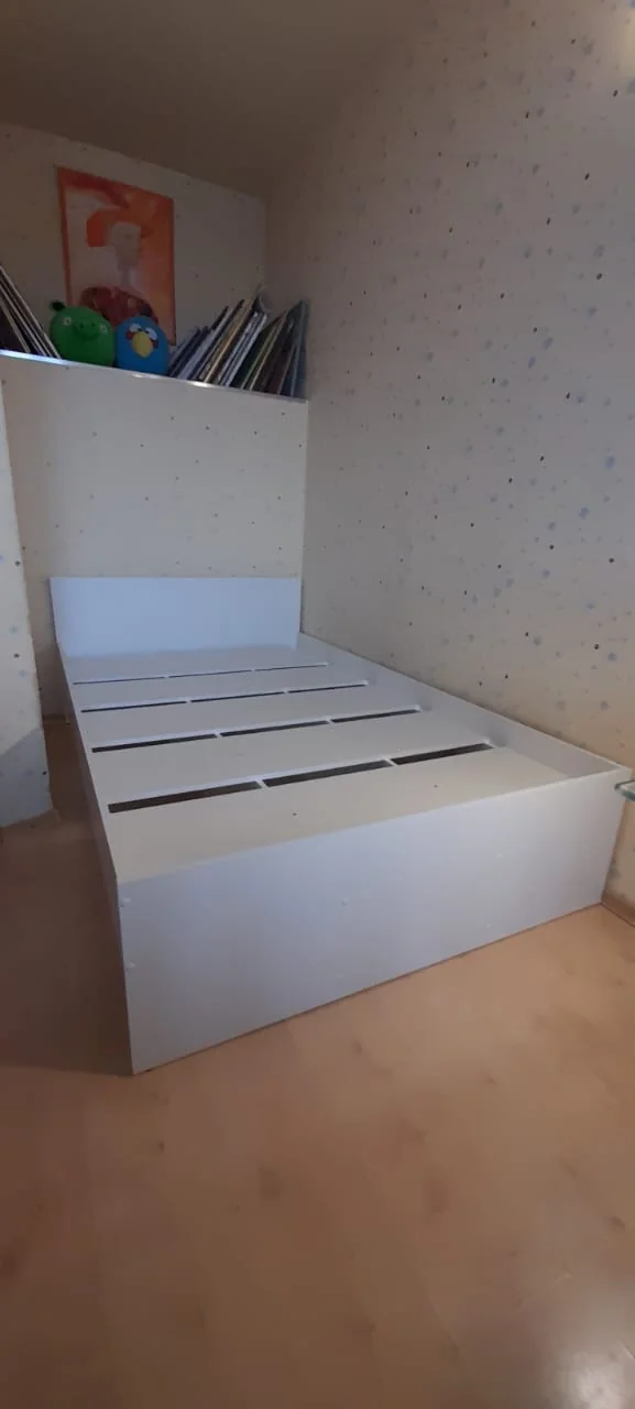 Односпальная кровать из серии Симпл может комплектоваться изделиями из этой же серии.Настил кровати выполнен из панелей ЛДСП.