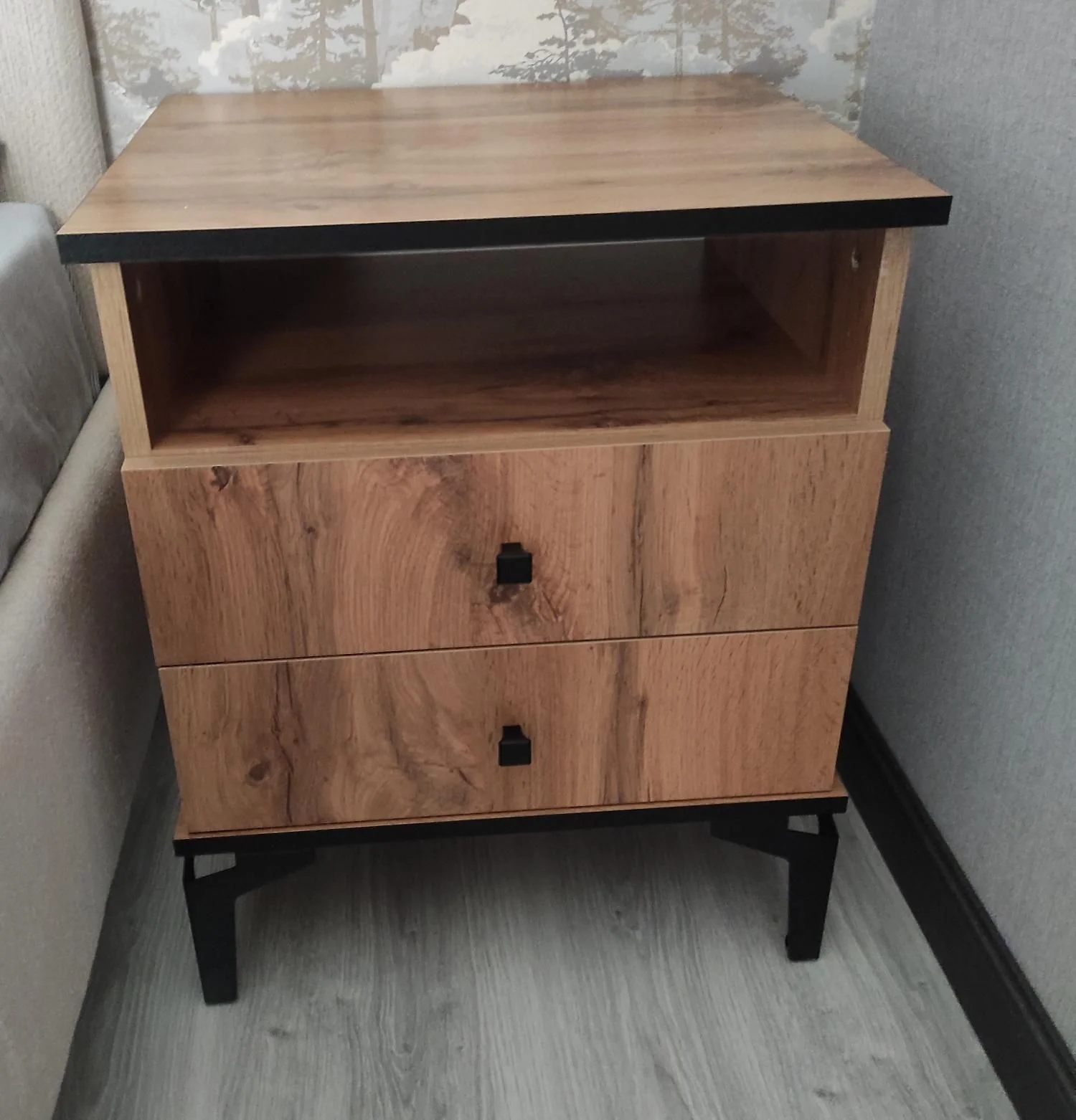 Тумба прикроватная Либерти 51.17 (опора h150) Дуб Вотан/Черный