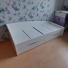 Хочу оставить отзыв о кровати Габриэлла с подъёмным механизмом.Классная кровать для одного или для пары, внутрь которой можно сложить постельные принадлежности или другие вещи. Мне, например, было негде хранить теплое одеяло на случай холодов, поэтому кровать с отделениями для хранения очень помогла. В целом удобная, качественная мебель. Красивые нежные цвета.
